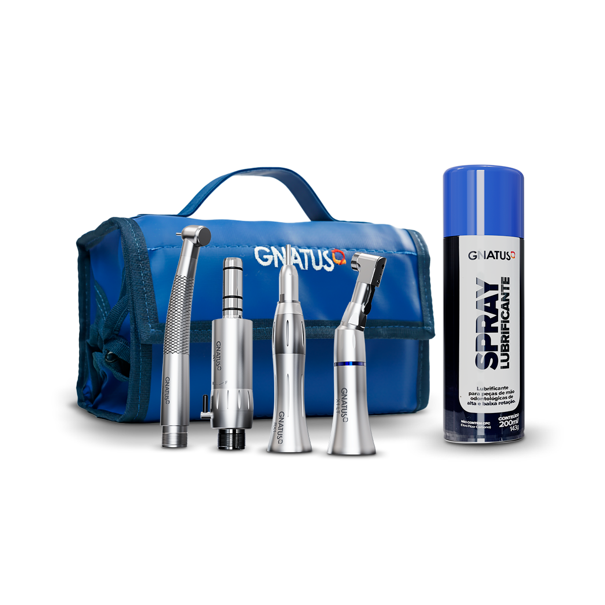 Ele conta com 4 tipos de peças de mão de manuseio, sendo elas um Micromotor IX1, Contra Ângulo X1 LT, Peça Reta RX1 e Caneta de Alta Rotação odontológica AX1 NT, todos certificados pela ANVISA (Agência Nacional de Vigilância Sanitária), além de uma necessaire para guardar os seus equipamentos e levá-los para onde for preciso, facilitando o seu transporte com segurança.