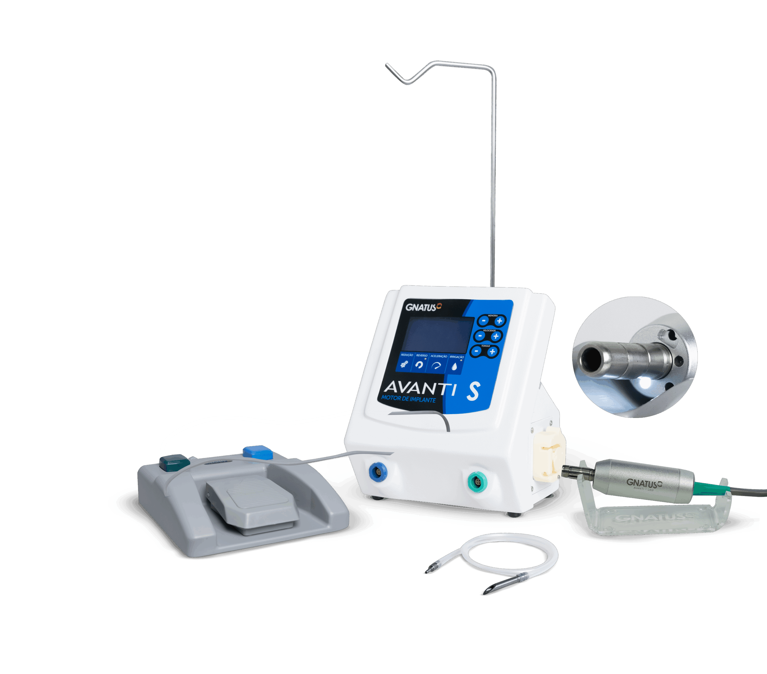 Utilizado para procedimentos cirúrgicos (Corte, perfuração, instalação de implante e desgaste ósseo, além de instrumentação e obturação endodôntica).